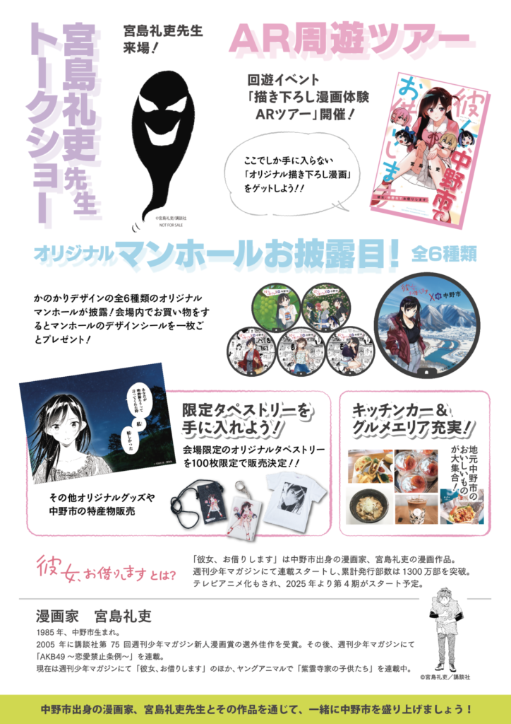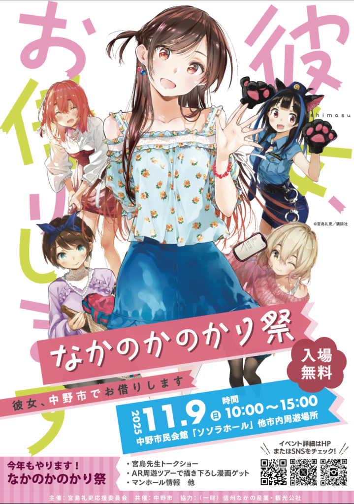中野市出身の漫画家・宮島礼吏先生が描く「彼女、お借りします」略して“かのかり”